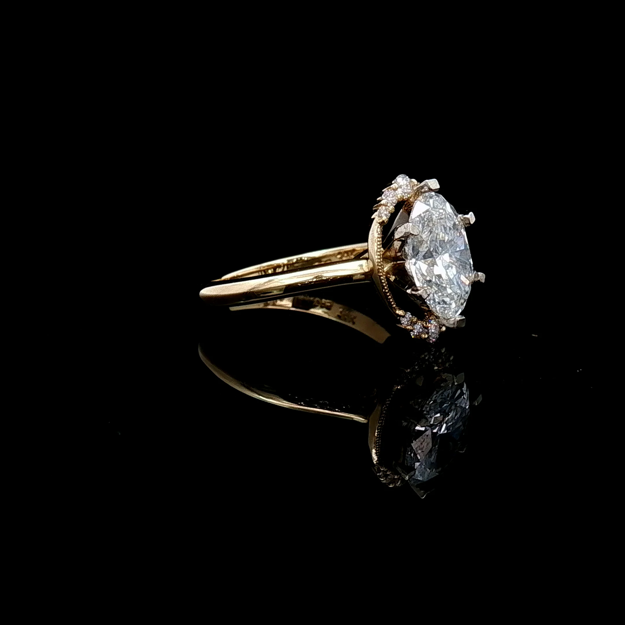 14k Yellow Gold Oval Stone Diamond and Milgrain Edging Halo Engagement Ring